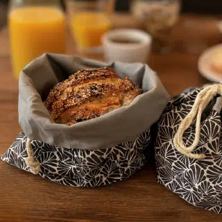 Le Sac à Pains version Corbeille s’invite sur la table de la salle à manger, tout en étant plus malléable qu’une corbeille rigide puisqu’une fois les pains et viennoiseries dégustés, il suffit d’y enlever le miettes et plier votre Sac à Pains pour le ranger dans un tiroir.