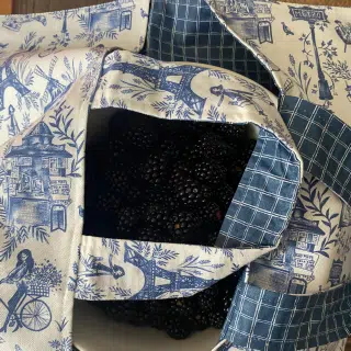 Le sac alimentaire réversible en coton enduit, avec un côté pour les plats froids, les desserts et les entrées, et un côté pour les plats chauds, vous permet de transporter vos plats faits maison chez des amis pour un dîner ou une fête en plein air. Lavable et réutilisable à volonté.
